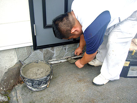 外壁の欠けモルタル等の欠けなど少々の左官作業はサービスで行うよう努力しております。